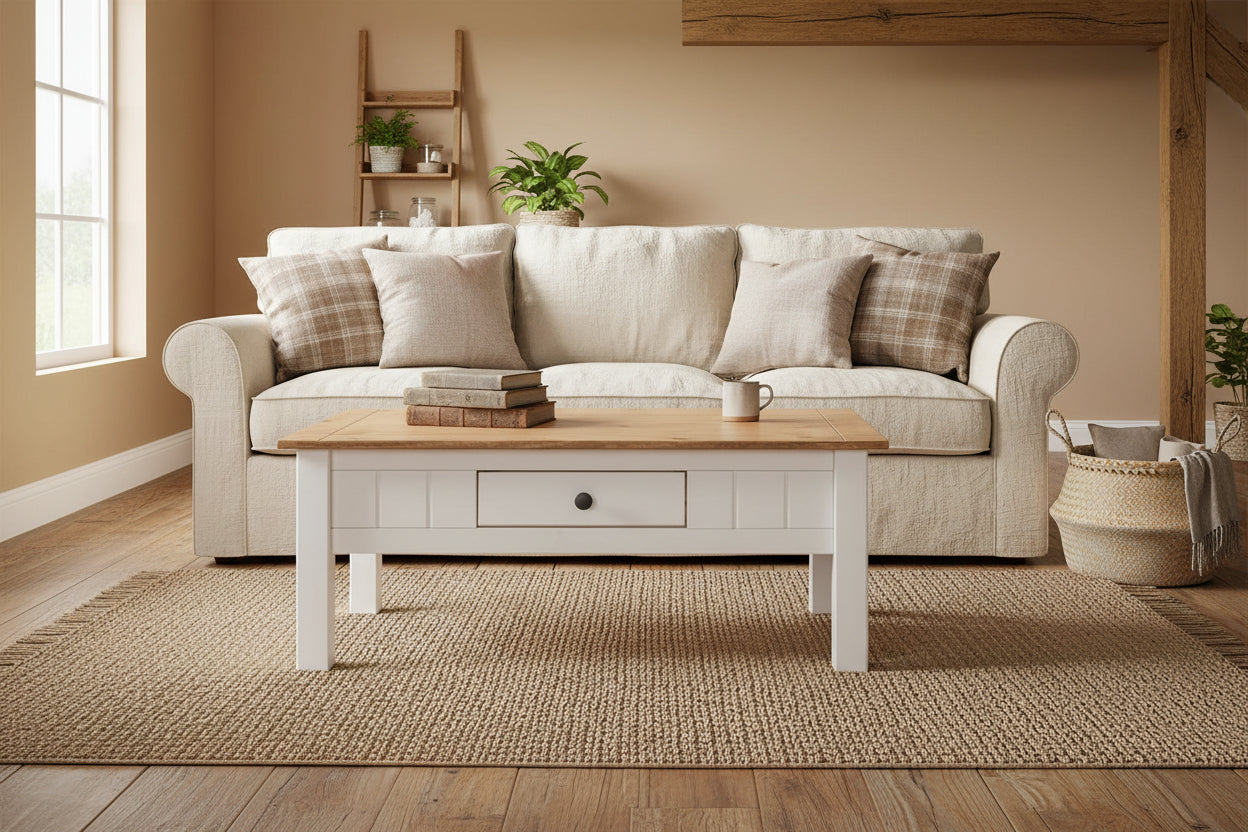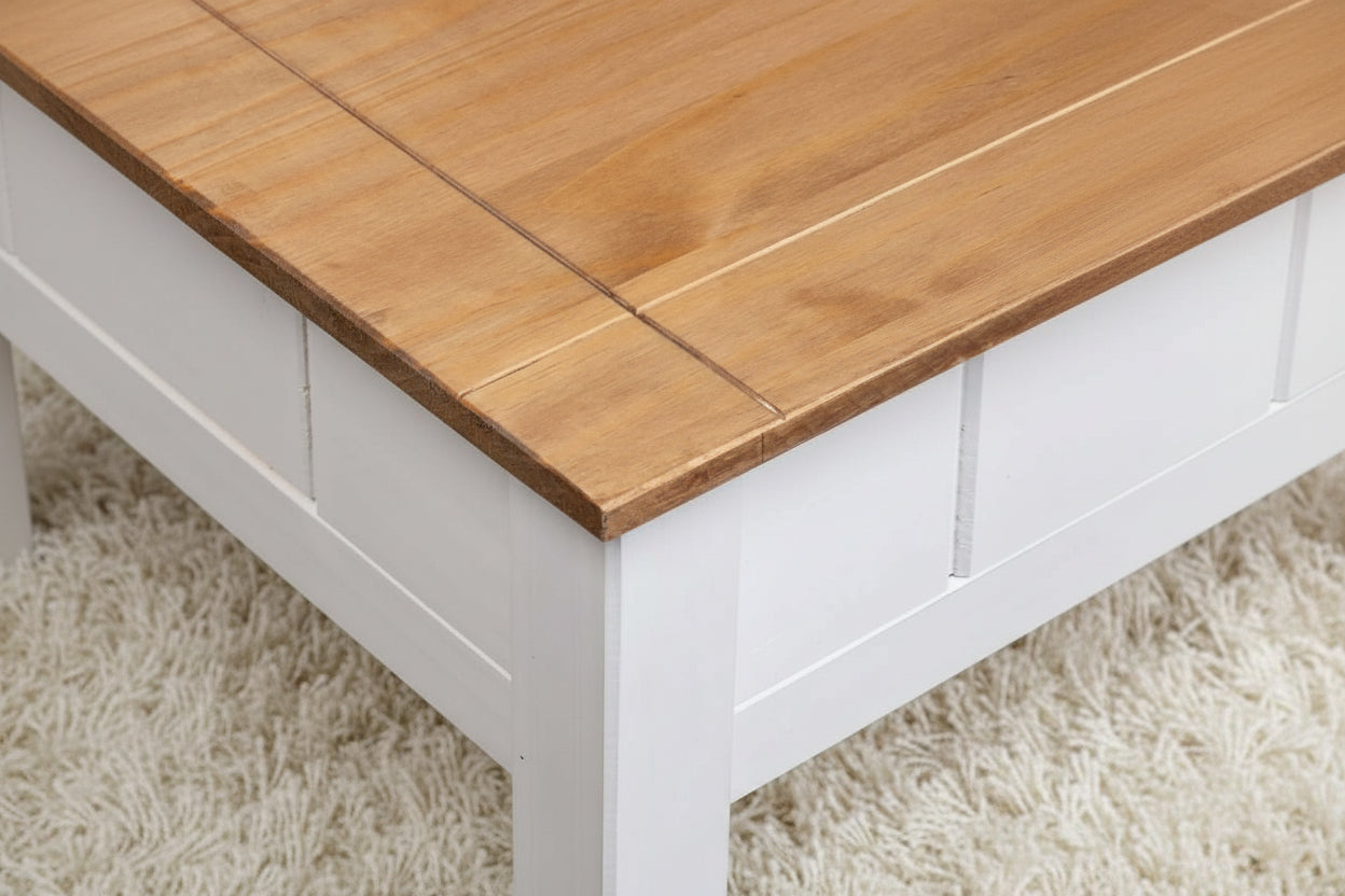 Τραπεζάκι Σαλονιού Μασίφ Ξύλο Πεύκο Λευκό με Συρτάρι Ρουστίκ 100x60x45 εκ 1282684