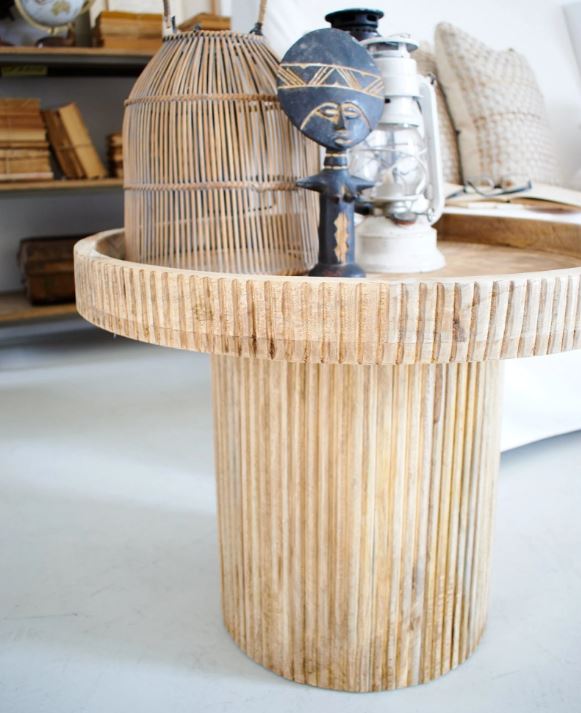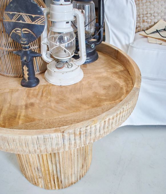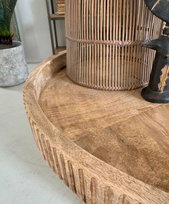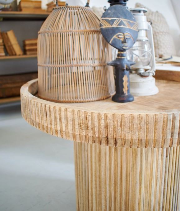 Το στρογγυλό τραπεζάκι σαλονιού είναι κατασκευασμένο από εξαιρετικής ποιότητας μασίφ ξύλο μάνγκο με φυσικό μελί χρώμα. Με απλό και καθαρό σχήμα, με βάση και άκρο επεξεργασμένα με πρωτότυπο κούμπωμα, αυτό το τραπεζάκι σαλονιού προσθέτει μια πινελιά μοντέρνας κομψότητας στο σπίτι σας.