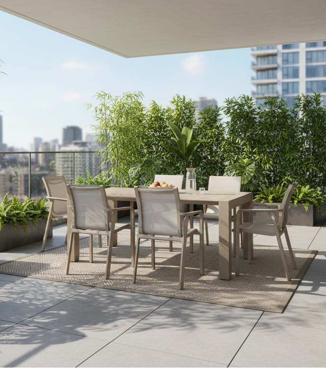 Κατασκευασμένο από ανθεκτικό πολυπροπυλένιο, αυτό το εξαιρετικό σετ προσφέρει απαράμιλλη ανθεκτικότητα, καθιστώντας το ιδανικό τόσο για επαγγελματική όσο και για οικιακή χρήση. Ο κομψός, μοντέρνος σχεδιασμός του και το εκλεπτυσμένο χρώμα του δημιουργούν έναν αρμονικό συνδυασμό κομψότητας και πρακτικότητας, ιδανικό για εσωτερικούς και εξωτερικούς χώρους.