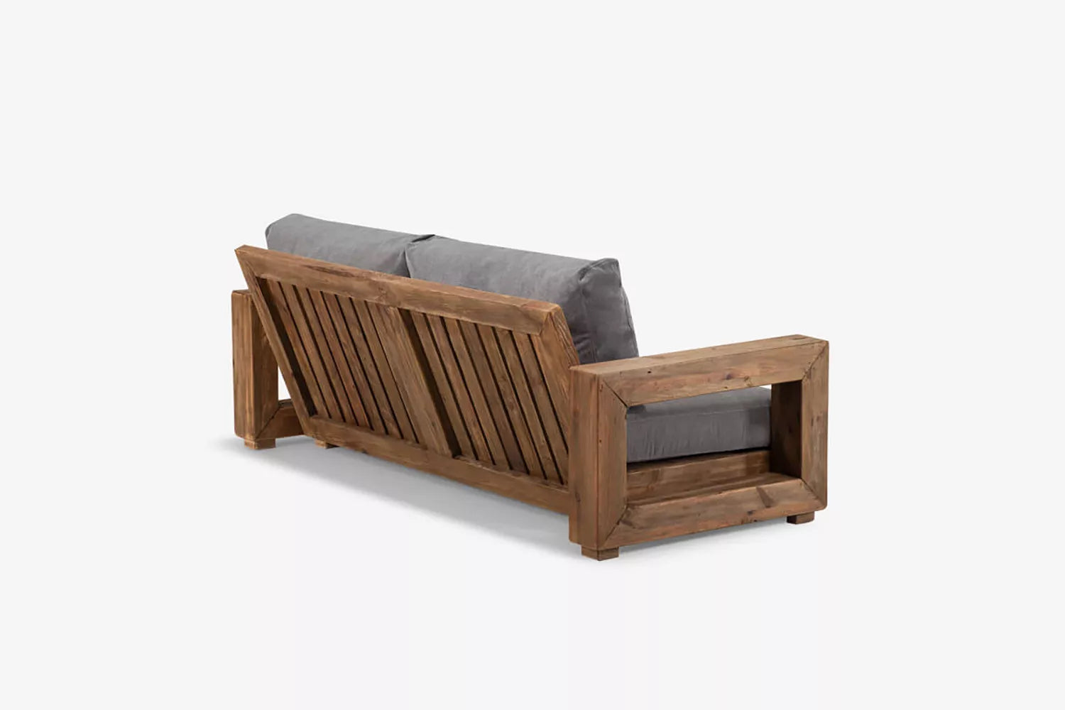 Απάντηση: Είναι κατασκευασμένος από μασίφ ξύλο πεύκου, ύφασμα και αφρολέξ, προσφέροντας αντοχή και άνεση.
