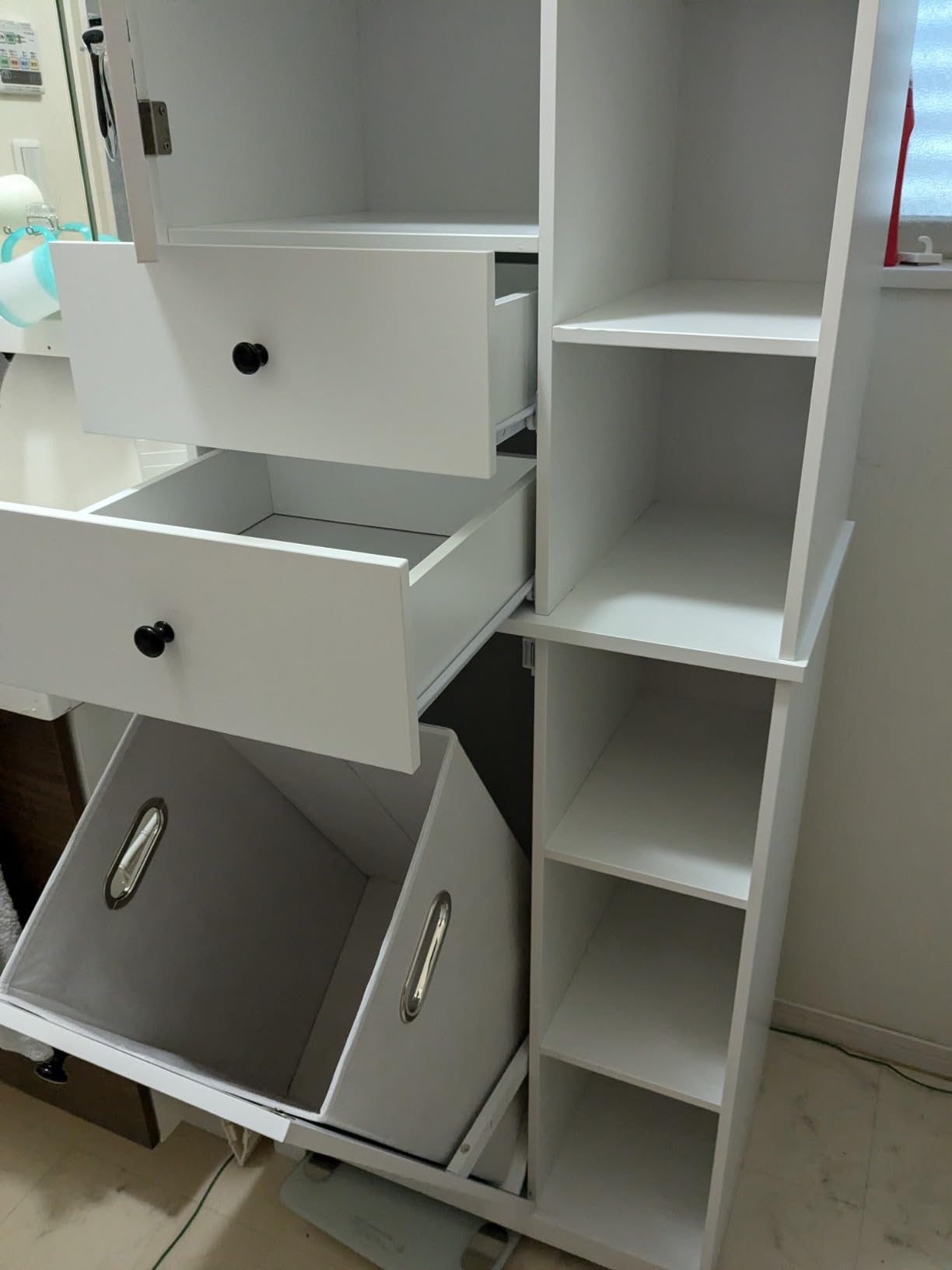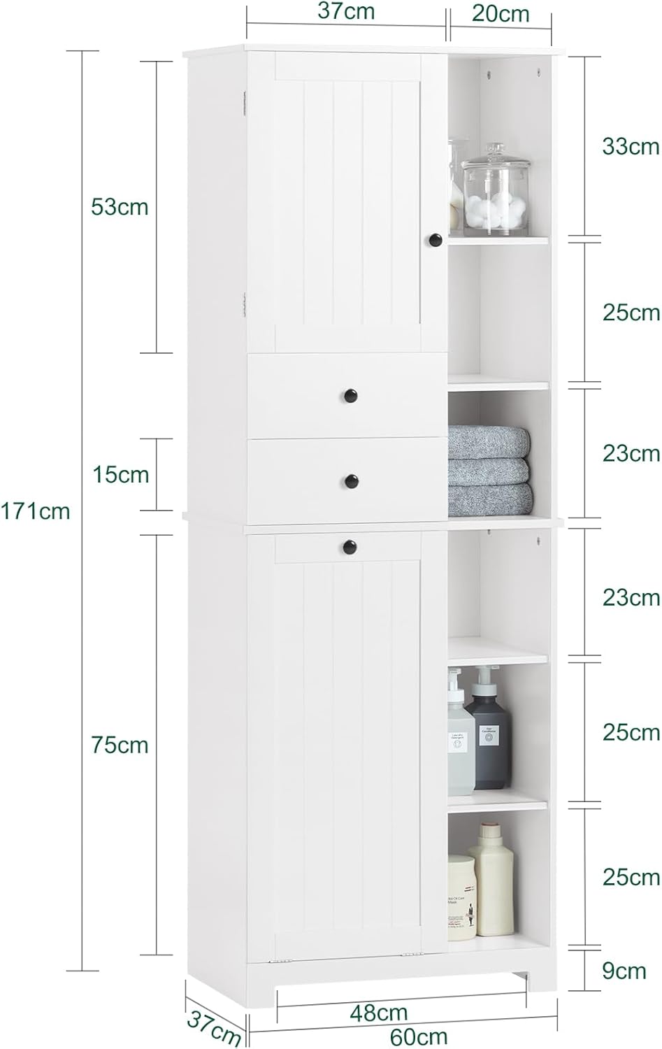 Ψηλό Ντουλάπι Μπάνιου με καλάθι για άπλυτα με Συρτάρια και Ράφια 60 x 171 x 37 εκ B0-CC227H9F