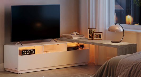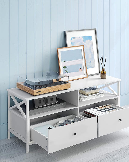 Έπιπλο Τηλεόρασης Χαμηλός Μπουφές για τηλεοράσεις έως 55 ίντσες Βάση Τηλεόρασης με 2 συρτάρια, Λευκό LT-V300B46