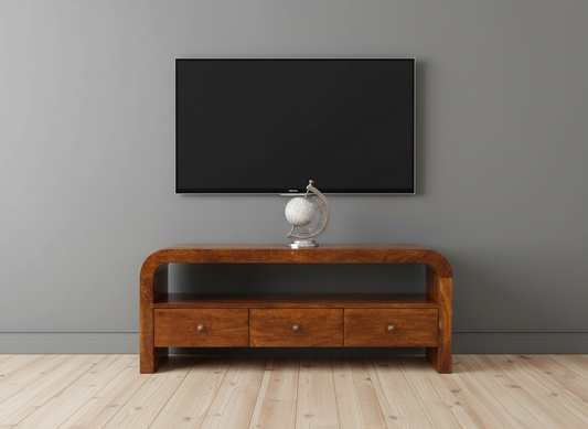 Έπιπλο Τηλεόρασης από Μασίφ Ξύλο με συρτάρια Χρώμα Καστανιά Κονσόλα IN3990