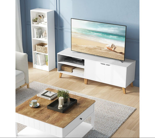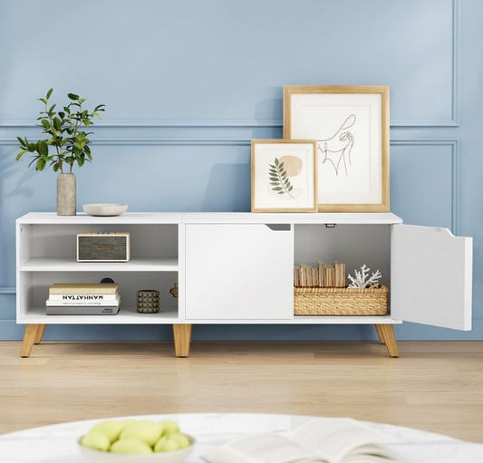 Έπιπλο Τηλεόρασης Χαμηλός Μπουφές για τηλεοράσεις έως 65 ίντσες Βάση Τηλεόρασης με Ντουλάπι, Λευκό LT-V027T46
