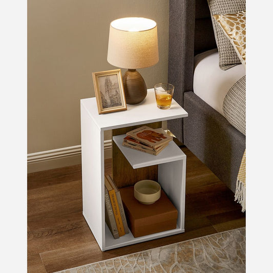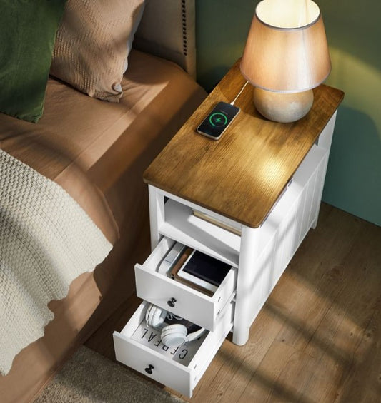 Στενό Βοηθητικό Τραπεζάκι με πολύμπριζο Λευκό με Καρυδιά Τραπέζι Σαλονιού Υπνοδωματίου LE-T327W14