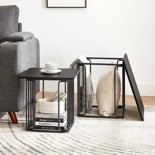 Τραπεζάκι Σαλονιού Βοηθητικό Τραπεζάκι Σετ 2 Τραπέζι Κομοδίνα Κρεβατιού Τραπέζι καναπέ για μικρούς χώρους μαύρο LE-T330B16