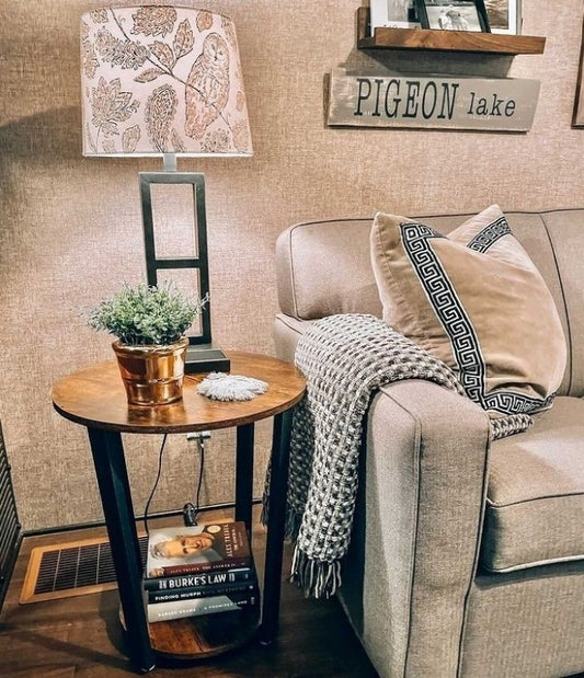 Πλαϊνό Βοηθητικό Τραπεζάκι Τραπέζι Στρογγυλό Βοηθητικό Καναπέ με Ράφι για Σαλόνι Υπνοδωμάτιο LE-T56BX
