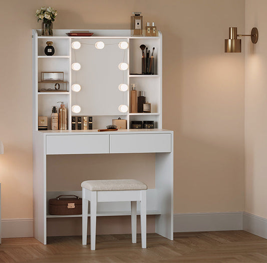 Τραπέζι Μπουντουάρ Μακιγιάζ Tουαλέτας Με Σκαμπό Κρεβατοκάμαρας Καθρέφτης Αφής Ρυθμιζόμενης Φωτεινότητας RV-T619W01