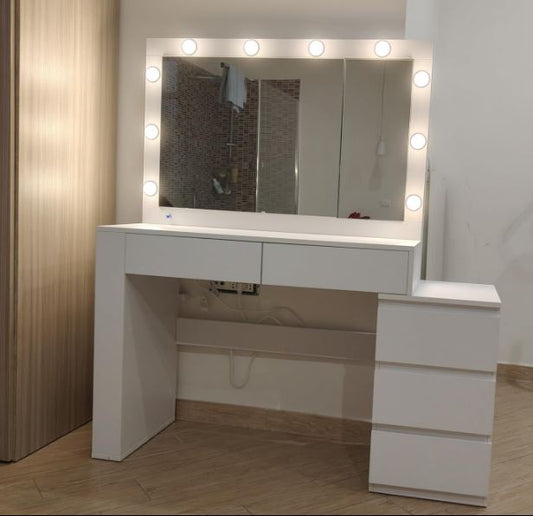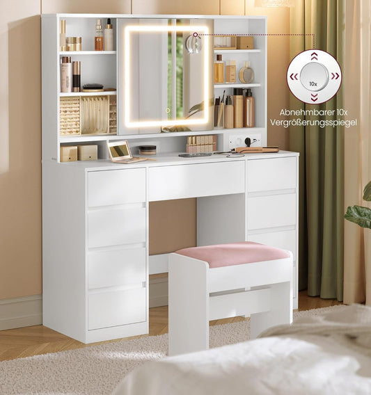 Τραπέζι Μπουντουάρ Μακιγιάζ Tουαλέτας με Καθρέφτη και φώτα LED Πολύπριζο Συρτάρια 10x μεγεθυντικός καθρέφτης 3 χρώματα Φωτός RD-T137W01