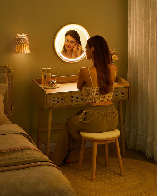 Τραπέζι Μπουντουάρ Μακιγιάζ Μεικαπ Τουαλέτας Κρεβατοκάμαρας Καθρέφτης Boho με Φωτισμό LED Ρυθμιζόμενη Φωτεινότητα RV-T007Y01