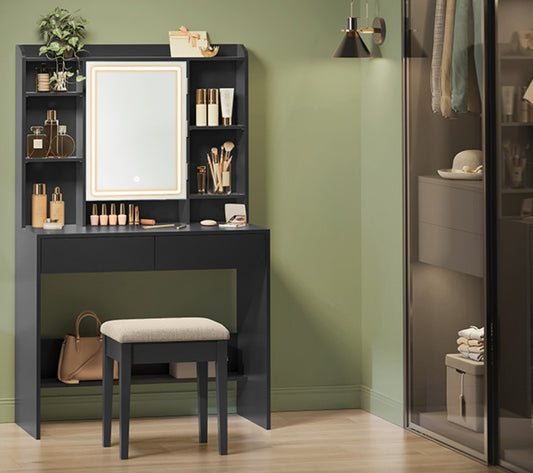 Τραπέζι Μπουντουάρ Μακιγιάζ Tουαλέτας Κρεβατοκάμαρας Καθρέφτης Με Ντουλάπι Μαύρο με Φωτισμό LED Ρυθμιζόμενη Φωτεινότητα RD-T123B01