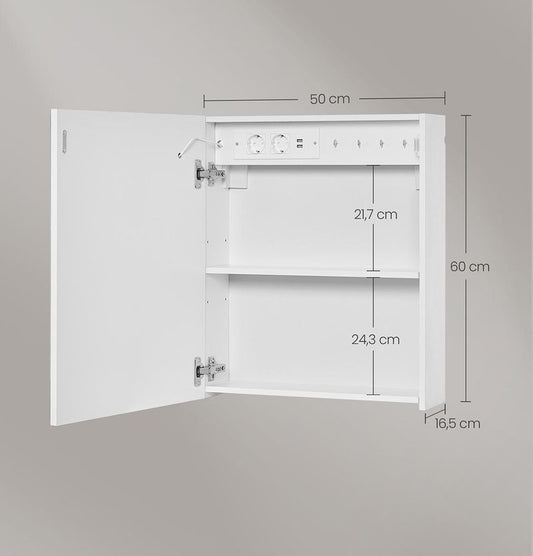 Ντουλάπι Καθρέφτης Μπάνιου Θερμαινόμενος με Ρύθμιση Φωτεινότητας με Πρίζα και USB Θύρες 16,5 x 50 x 60 εκ BB-K133W01