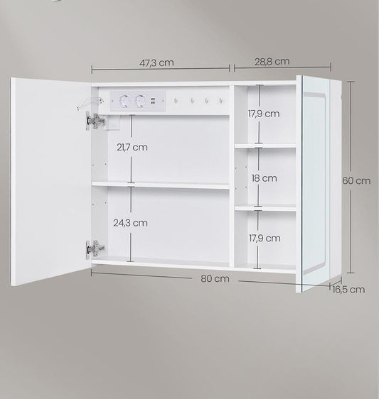 Ντουλάπι Καθρέφτης Μπάνιου Λειτουργία Ξεθαμπώματος με Ρύθμιση Φωτεινότητας με Πρίζα και USB Θύρες 16,5 x 80 x 60 εκ BB-K134W01