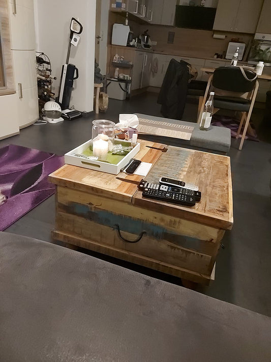 Τραπέζι Σαλονιού Τραπεζάκι Καφέ Βοηθητικό Ανακυκλωμένο Ξύλο Μασίφ Μεγάλο Τετράγωνο με Συρτάρια Τραπέζι Καναπέ 1243978