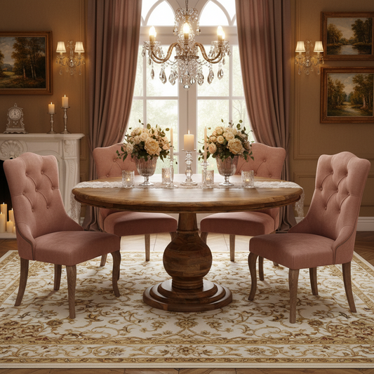 Τραπέζι Τραπεζαρίας Ροτόντα Μασίφ Ξύλο 152 εκ Στρόγγυλο Καφέ 85257