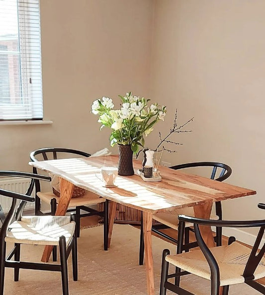 Τραπέζι Κουζίνας Τραπεζαρίας Φαγητού 110-160 εκ. Μασίφ Ξύλο Ρουστίκ Φυσικό Σχήμα Δέντρου 1353288-89-90