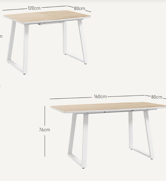 Τραπέζι Τραπεζαρίας Επεκτεινόμενο Πτυσσόμενο 120-160 x 80 x 76 εκ Τραπέζι Κουζίνας Δρύς Λευκό 835-525V00AK