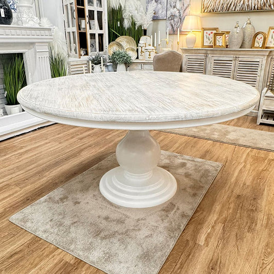 Τραπέζι Τραπεζαρίας Ροτόντα Μασίφ Ξύλο 152 εκ Στρόγγυλο Λευκό Παλαιωμένο Vintage 85256