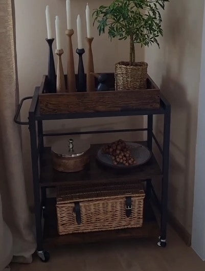 Τρόλεϊ Μπαράκι Βοηθητικό Τραπεζάκι Kαρότσι Μπαρ Kουζίνας Τρόλει Σερβιρίσματος Ράφι Κουζίνας vintage σκούρο καφέ LR-C72X