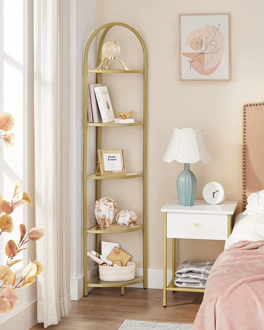 Μοντέρνα Γωνιακή Βιβλιοθήκη Ράφι Ψηλά Ράφια Μεταλλική Χρυσή και Μαύρη για Σαλόνι Κρεβατοκάμαρα LG-T810A01