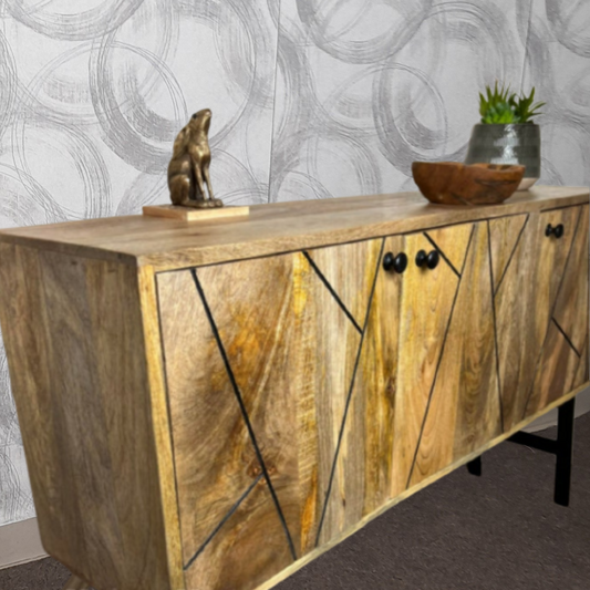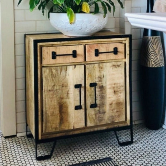 Ρουστίκ Μπουφές Έπιπλο Κονσόλα Εισόδου Σιφονιέρα από Μασίφ Ξύλο με Μεγάλα Ντουλάπια 1245135