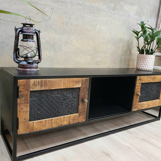 Έπιπλο Τηλεόρασης με Μεταλλικό Σκελετό και Ακατέργαστο Ξύλο Μάνγκο 1323148
