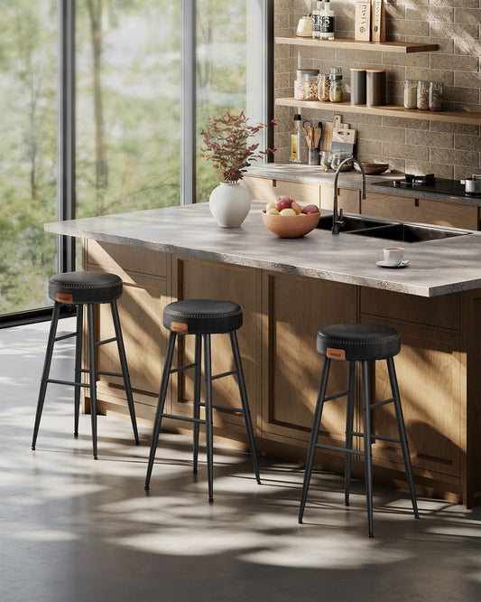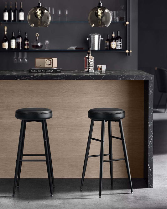 Σκαμπό για Πάσο Κουζίνας σετ 2 τεμ Ημίσκαμπο 63εκ Μπαρ EKHO Δερματίνη Ρετρό Στυλ B34-LBC080B01