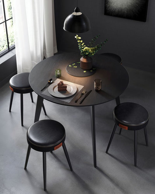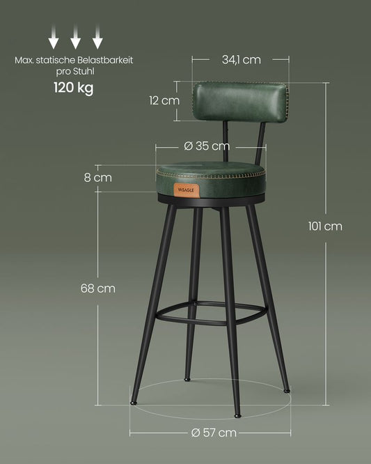 Σκαμπό για Πάσο Κουζίνας σετ 2 Καρέκλες Μπάρ EKHO Μαύρο και Πράσινο Δέρμα Ρετρό Στύλ LB-C090B01V1