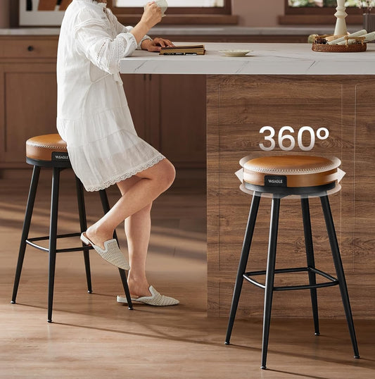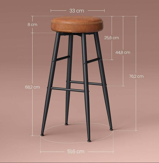 Σκαμπό για Πάσο Κουζίνας σετ 2 Καρέκλες EKHO Μπάρ Ταμπά Δέρμα Ρετρό Στυλ LB-C090K01V1
