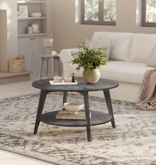 Στρογγυλό Τραπεζάκι Σαλονιού 2 Επιπέδων 80 εκ Εύκολο στη Συναρμολόγηση Γκρι LC-T243G68