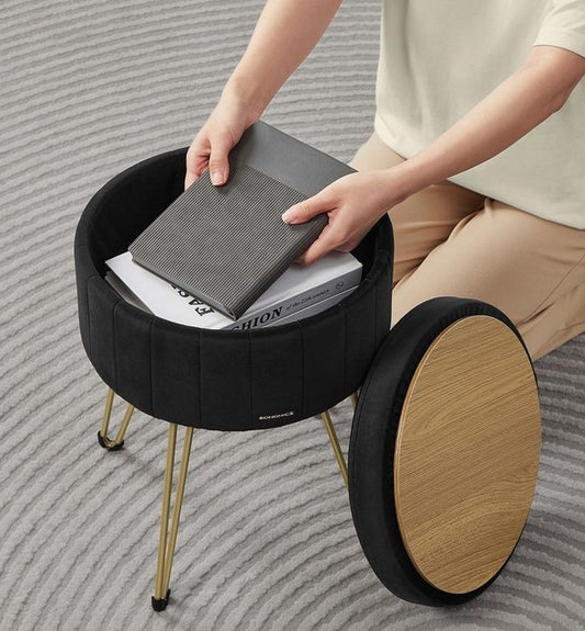 Σκαμπό Πολυλειτουργικό Βελούδινο με Αποθηκευτικό Χώρο Υποπόδιο Μπουντουάρ LO-M003B01
