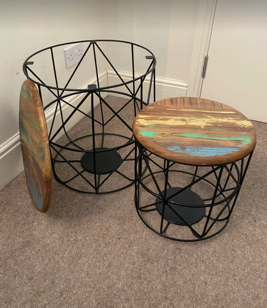 Στρόγγυλα Τραπεζάκια Σαλονιού Σετ 2 τεμ. Βοηθητικά Τραπέζια Μασίφ Ανακυκλωμένο Ξύλο 1286578