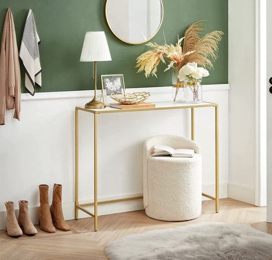 Μοντέρνα Γυάλινη Κονσόλα Λευκο Έπιπλο Εισόδου Τραπέζι Κονσόλας Μεταλλική LG-T025W01