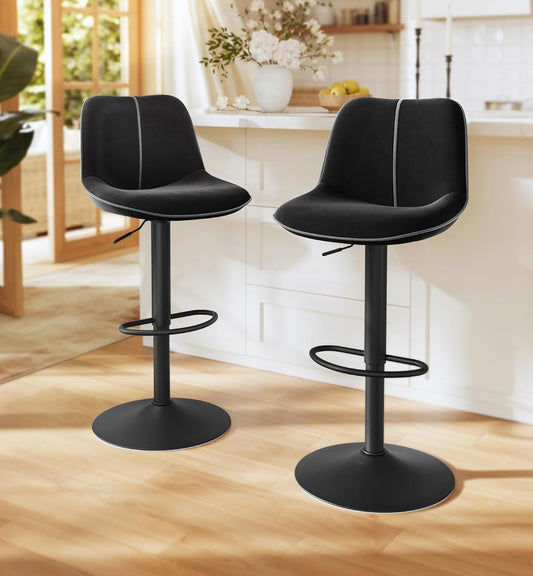 Σκαμπό για Πάσο Κουζίνας Σετ 2 τεμ. Ρυθμιζόμενο Ύψος με Πλάτη μαύρο LJ-B073B01