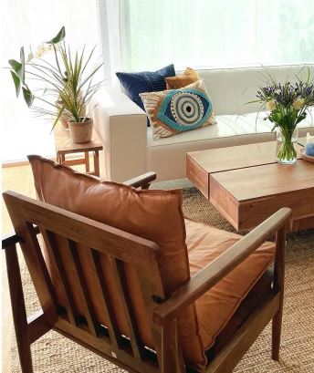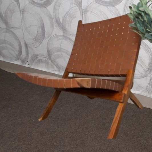 Ρετρό Πολυθρόνα Χειροποίητη από μασίφ ξύλο και Δέρμα 1246480