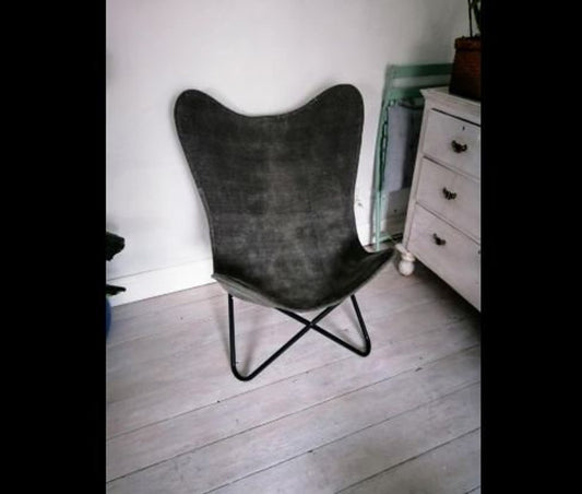 Πολυθρόνα Butterfly από Καραβόπανο Ανθρακί 1283766