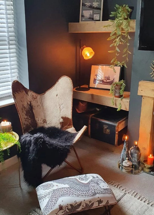Πολυθρόνα Πεταλούδα από Δέρμα με Τρίχωμα Σαλόνι Καρέκλα 1246391