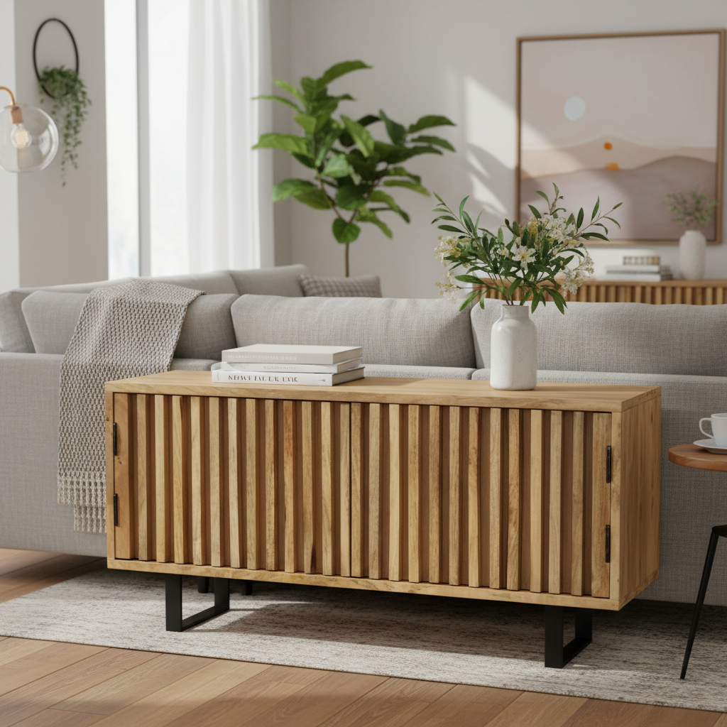 Ανεβάστε τον χώρο σας με το άρτια κατασκευασμένο ντουλάπι μας, συνδυάζοντας την πλούσια κομψότητα του μασίφ ξύλου μάνγκο και του στιβαρού σιδήρου. Σχεδιασμένο για να εντυπωσιάζει, αυτό το ευέλικτο κομμάτι υπόσχεται ανθεκτικότητα, στυλ και πρακτικότητα.