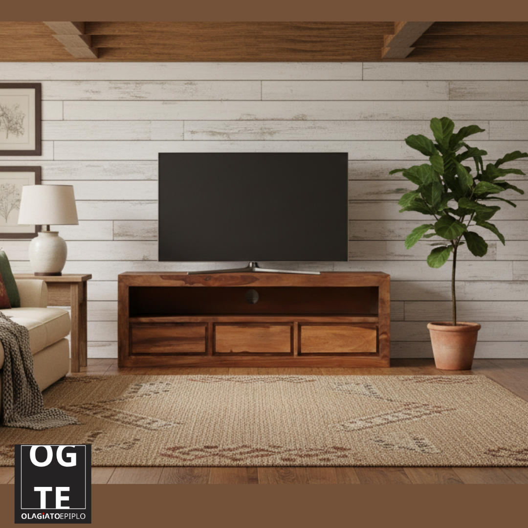 Ζήστε την ρουστίκ γοητεία και την διαχρονική κομψότητα με το χειροποίητο ξύλινο έπιπλο τηλεόρασης μας, σχεδιασμένο για να αναβαθμίσει τον χώρο σας με τη μοναδική του γοητεία. Κάθε έπιπλο είναι σχολαστικά κατασκευασμένο από μασίφ ξύλο ακακίας, ένα τροπικό σκληρό ξύλο γνωστό για τα έντονα νερά του και την απαλή υφή του. Με τη φυσική του αντοχή στη σήψη, αυτό το τραπέζι τηλεόρασης υπόσχεται απαράμιλλη σταθερότητα και ανθεκτικότητα, διασφαλίζοντας ότι θα παραμείνει ένα εντυπωσιακό κεντρικό κομμάτι για τα επόμενα χρόνια.