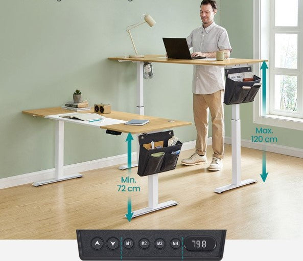 Μπορείτε να ρυθμίσετε το ύψος του ηλεκτρικού γραφείου μεταξύ 72 και 120 cm και να εξοικονομήσετε 4 προτιμώμενα ύψη. Υπάρχει επίσης σύστημα προστασίας από σύγκρουση.