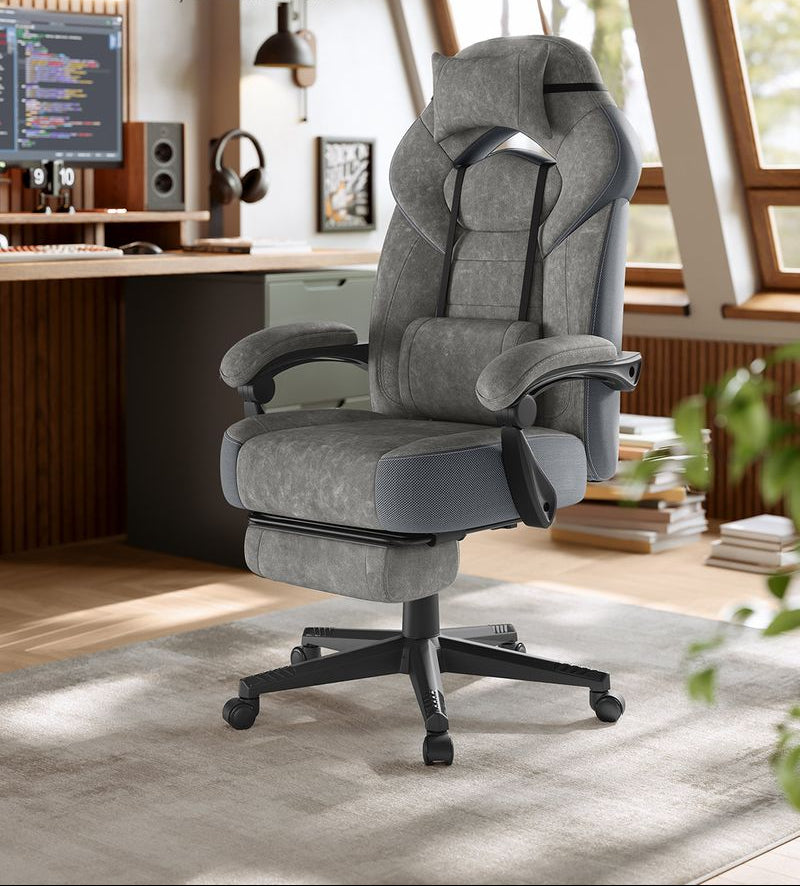 - Υλικό υψηλής ποιότητας: Η καρέκλα με ταπετσαρία από τεχνητό σουέτ είναι φιλική προς το δέρμα, αναπνέει και αθόρυβη χάρη στη λιγότερη τριβή. Το διχτυωτό ύφασμα στα πλάγια εξασφαλίζει καλό αερισμό, ώστε να παραμένετε άνετα ακόμα και όταν κάθεστε για ώρες.