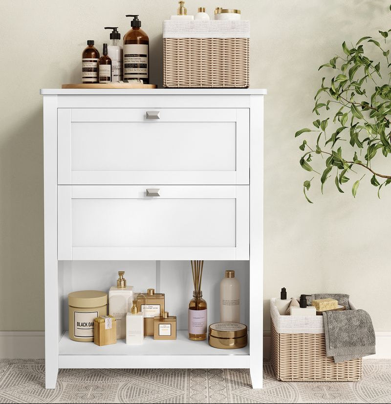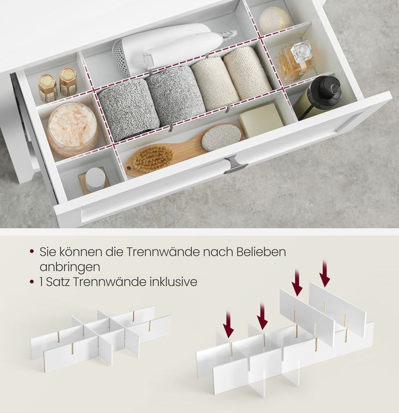 - [Ευρύχωρο] 1 επιφάνεια, 2 μεγάλα συρτάρια, 1 ανοιχτό τμήμα με 2 καλάθια από πολυρατάν: Αυτό το ντουλάπι μπάνιου διαστάσεων 30 x 60 x 80 cm σας προσφέρει επαρκή και ποικίλο χώρο για να καλύψετε τις διαφορετικές ανάγκες αποθήκευσης.