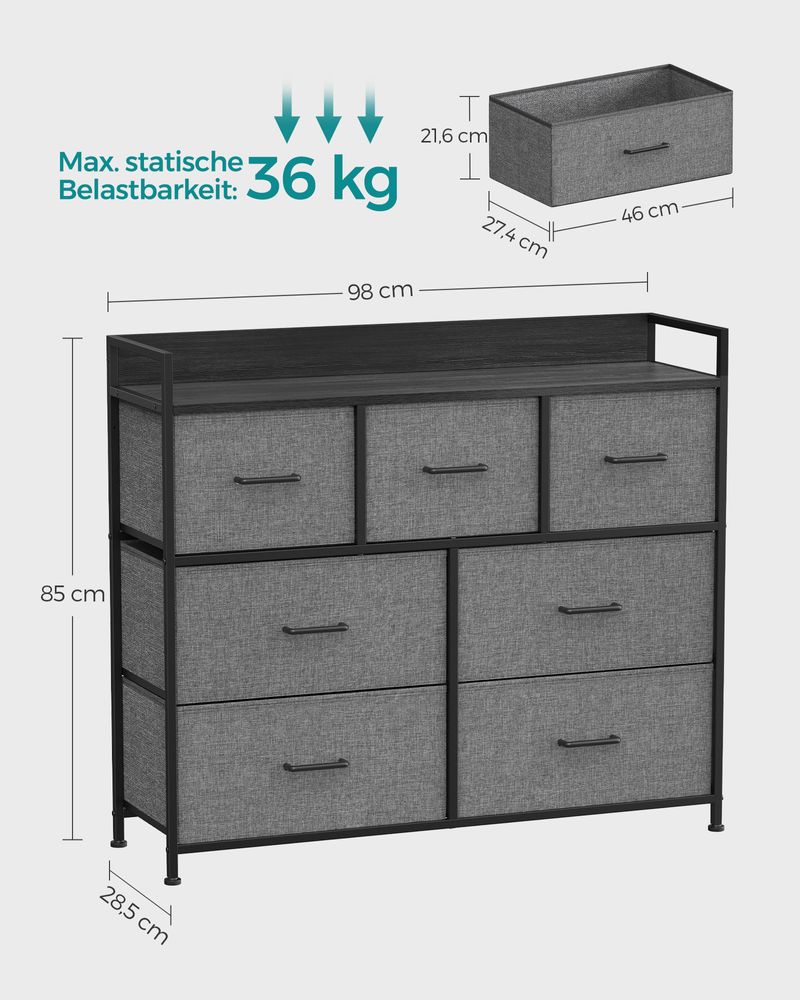 - [Ευρύχωρος & οργανωμένος αποθηκευτικός χώρος] Με 7 συρτάρια (4 μεγάλα και 3 μικρά), μπορείτε να αποθηκεύσετε τα πράγματά σας με οργανωμένο τρόπο. Κάθε μεγάλο συρτάρι χωράει 60-70 ζευγάρια κάλτσες, 13-16 ζευγάρια μπλουζάκια ή 7-11 ζευγάρια παντελόνια. Κάθε μικρό συρτάρι χωράει 40-45 ζευγάρια κάλτσες, 9-10 ζευγάρια μπλουζάκια ή 4-7 ζευγάρια παντελόνια.