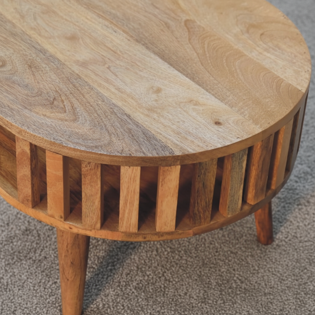 Αναβαθμίστε τον χώρο σας με το τραπεζάκι σαλονιού , έναν αριστοτεχνικό συνδυασμό σύγχρονου ιαπωνικού σχεδιασμού και διαχρονικής δεξιοτεχνίας. Κατασκευασμένο από 100% μασίφ ξύλο μάνγκο, αυτό το εξαιρετικό κομμάτι αποτυπώνει την κομψότητα μέσα από τις σανιδωτές πλευρές του που επιτρέπουν στο φυσικό φως να εισχωρεί στο δωμάτιο, δημιουργώντας μια φωτεινή και ευάερη ατμόσφαιρα. Συμπληρώνει άψογα τους μοντέρνους, μινιμαλιστικούς ή κλασικούς εσωτερικούς χώρους.